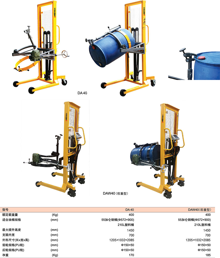 ● 叼扣式和抱箍式相結(jié)合,適合各種55加侖鋼制桶和200L閉口塑料桶。