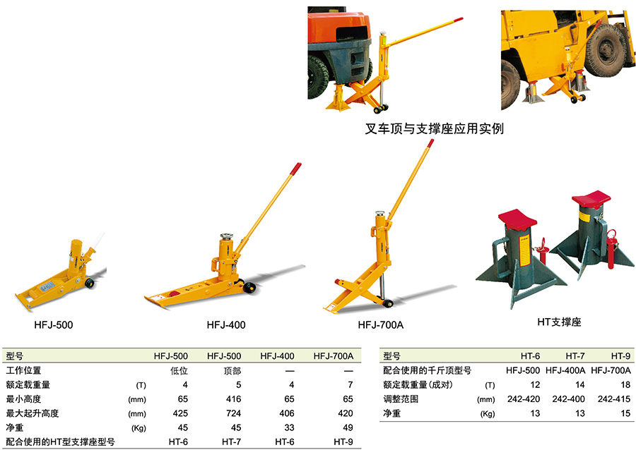 ● HFJ-500具有快速起升功能, 而且具有兩個工作面。
