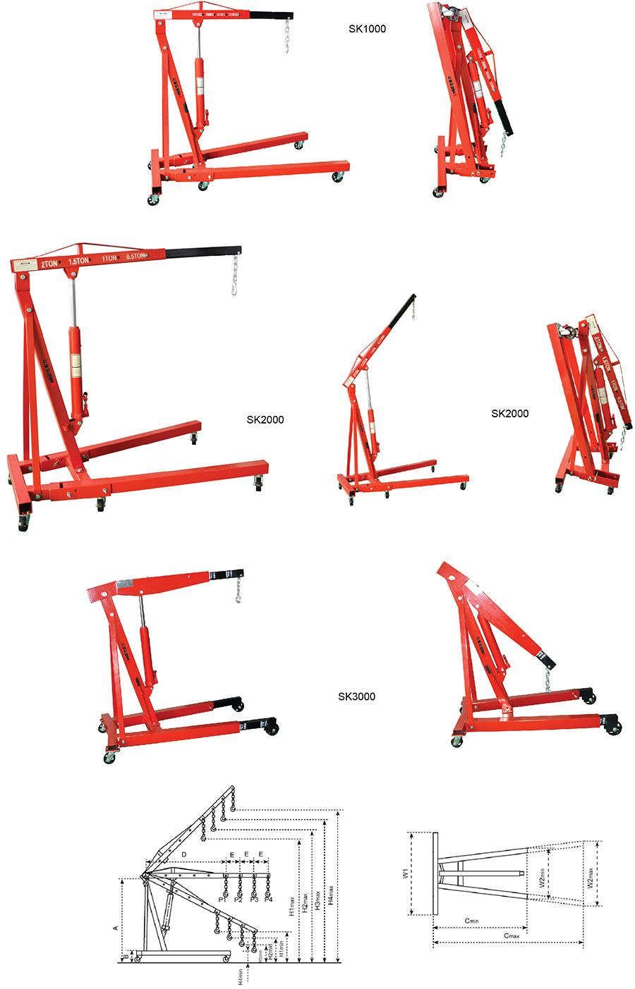 ● 吊臂長度對應四檔可調,請注意對應載重標識。